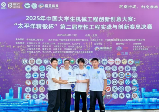 近日,2025年中国大学生机械工程创新创意大赛:“太平洋精锻杯”第二届塑性工程实践与创新赛总决赛在太原科技大学顺利举办。大赛共吸引了哈尔滨工业大学、西北工业大学、华中科技大学等全国103所高等院校的523支参赛队伍。经过资格审查、校赛和区域赛,最终有153支队伍参加了总决赛。我校团队成功晋级全国总决赛,获得国家级三等奖。